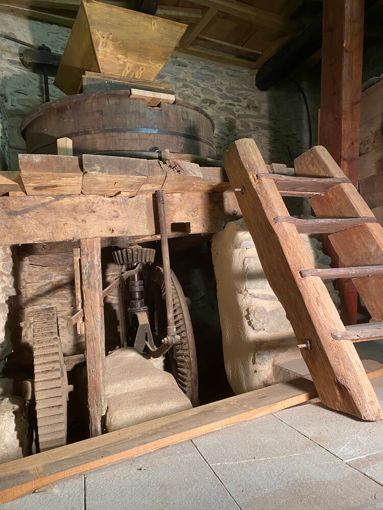 Le macine, le pietre e gli ingranaggi originali convivono oggi con elementi moderni e funzionali, per un equilibrio tra passato e innovazione.